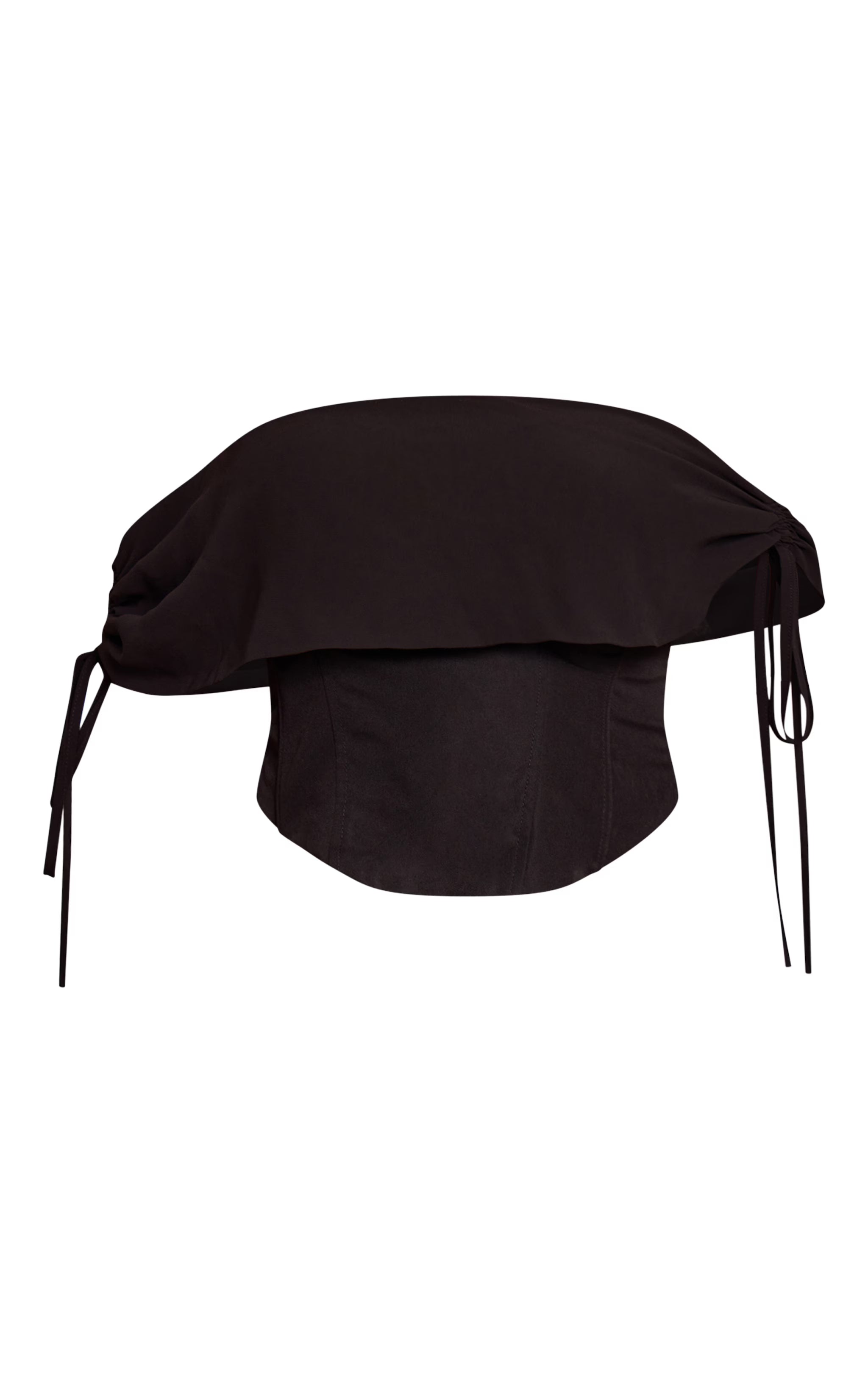 The shape black chiffon bardot corset top exudes chic sophistication with its structured bodice and delicate off-the-shoulder neckline. Crafted from lightweight chiffon, it offers a fitted yet breathable silhouette. Pair with high-waisted pants or a sleek midi skirt for a stylish evening ensemble, and add strappy heels to elevate the look.