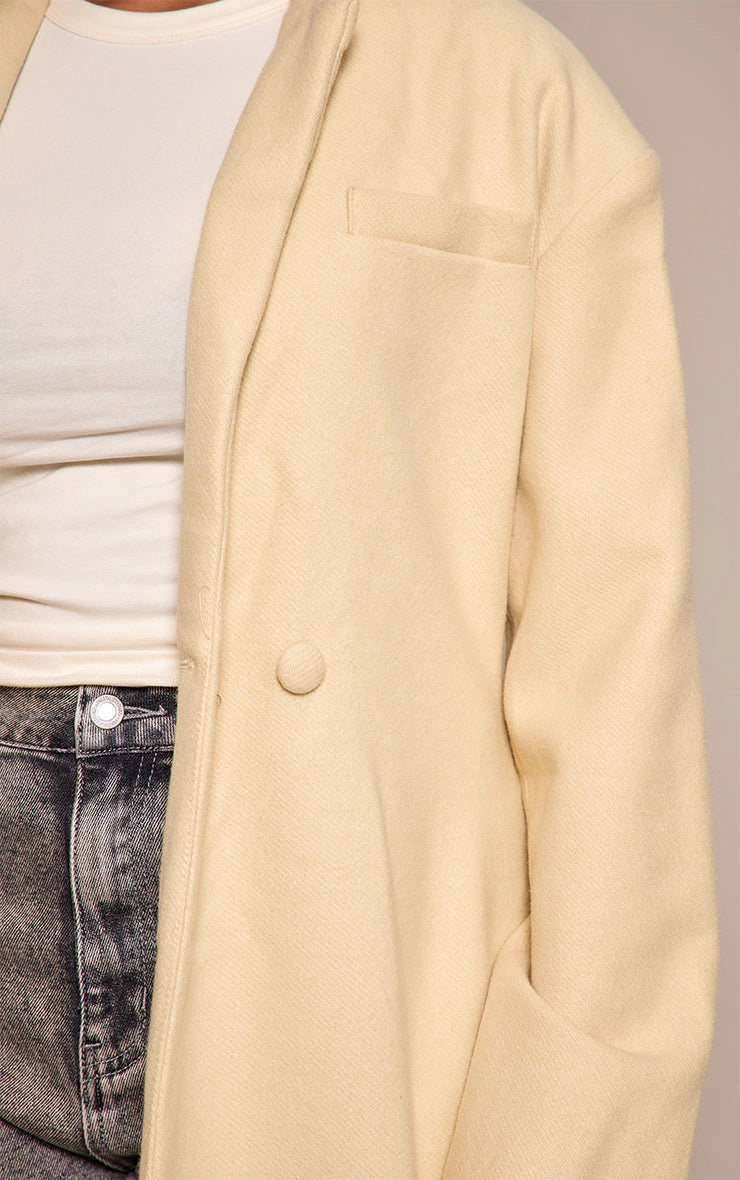 Step out in sophistication with the shape butter yellow wool-look cinched waist longline blazer coat. Featuring a butter yellow wool-look fabric, it’s tailored with a cinched waist for a flattering silhouette. Pair with neutral pants and heels for timeless elegance.