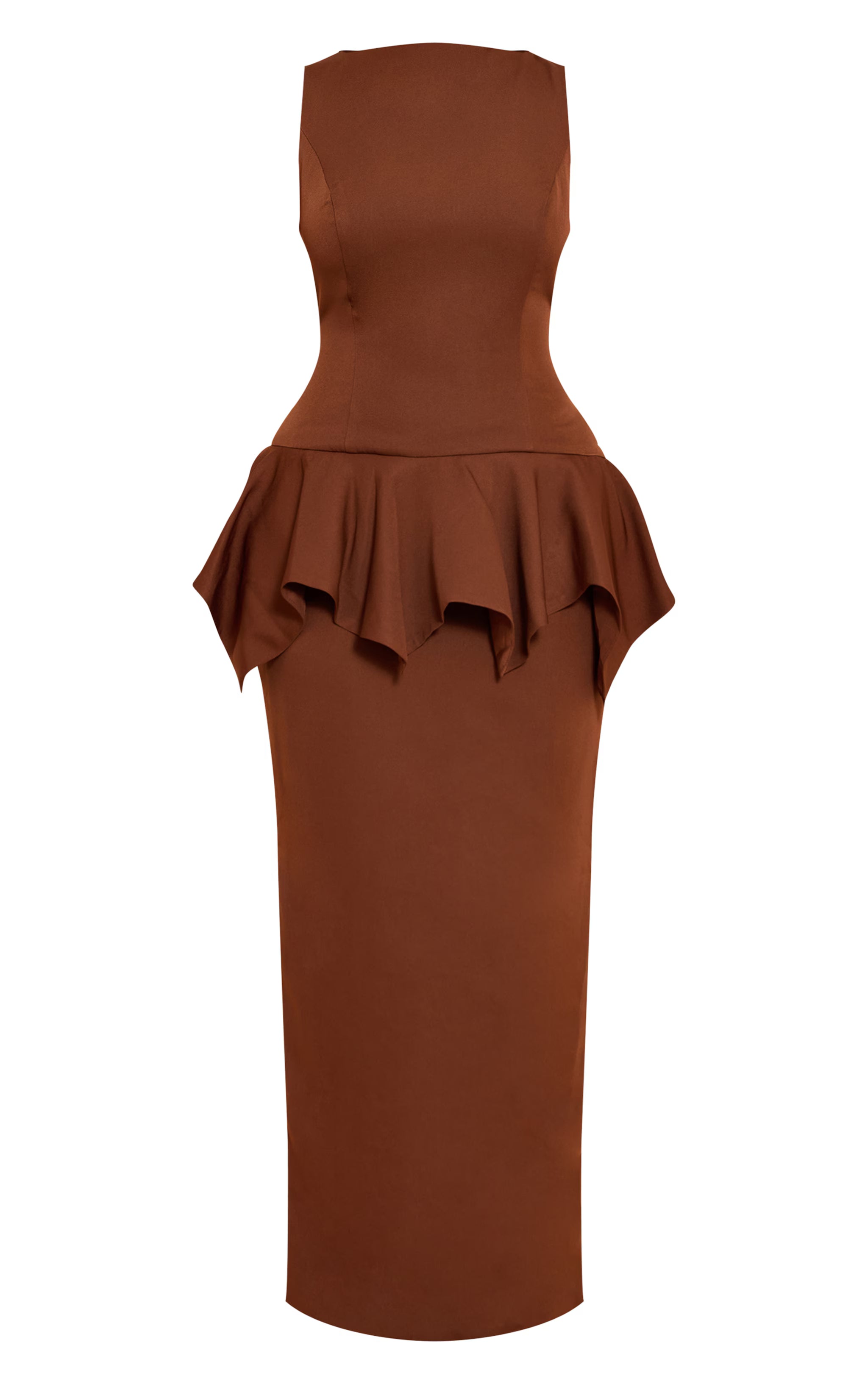 Opt for understated glamour in the shape chocolate boat neck dropped hem maxi dress. Crafted from soft stretch jersey in a warm chocolate shade, it features a flattering boat neckline and dropped hem design. Team with strappy heels and statement jewelry for an elegant evening outfit.