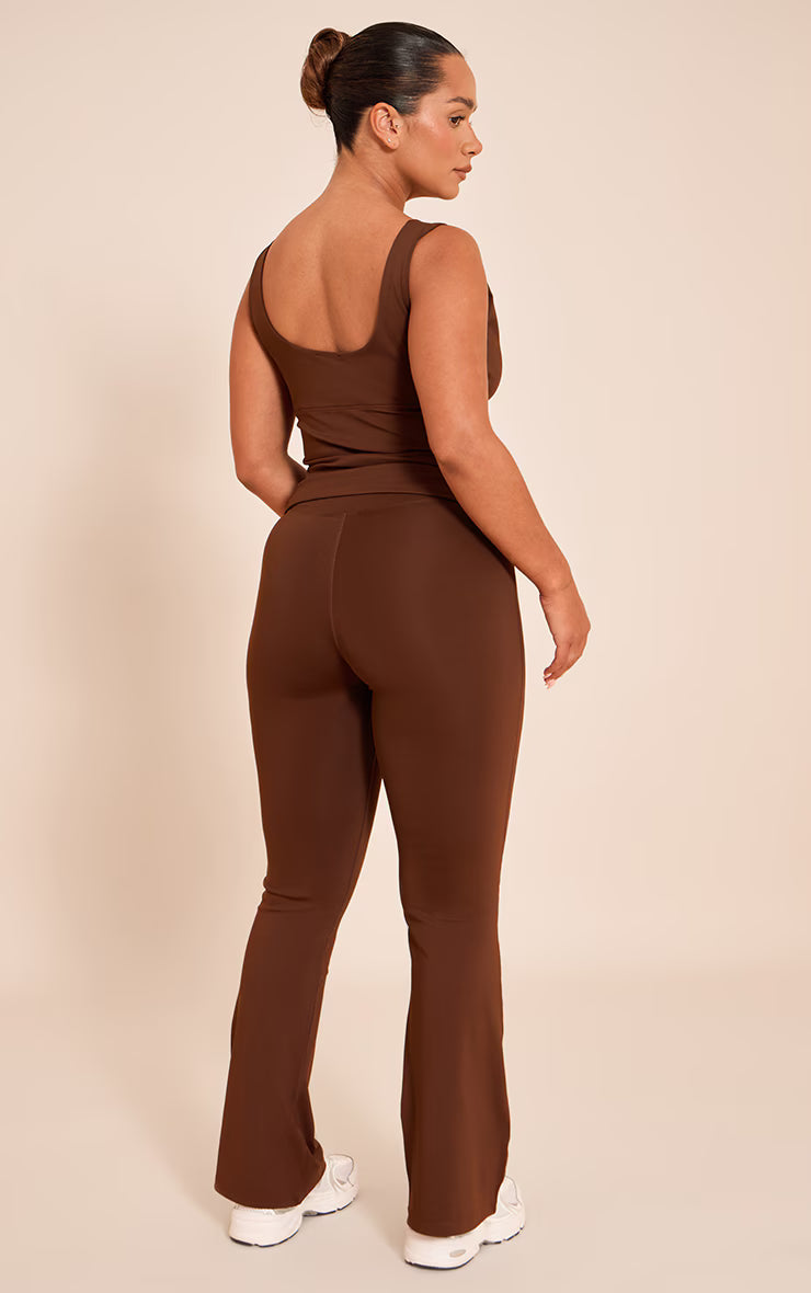 The shape chocolate sculpt wrap v front wide leg pants redefine modern tailoring with a figure-hugging waist and flowing silhouette. The wrap front detail adds a touch of sophistication while elongating the legs. Style with the matching jacket for a put-together look or with a bodysuit for understated polish.