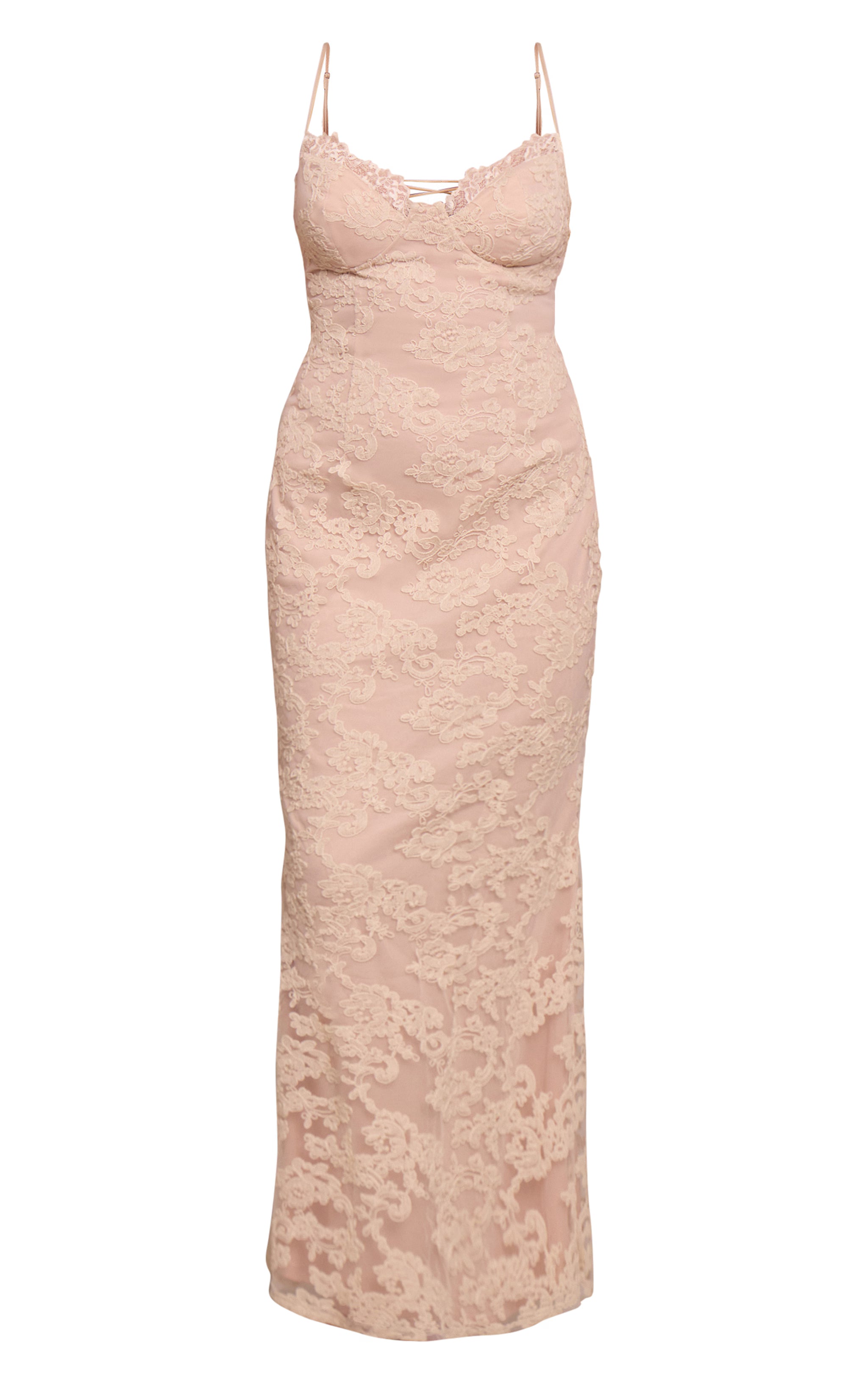 Own the moment in an ensemble designed for definitive impact. The shape cream textured floral underwired bodycon maxi dress makes an unmistakable statement with its elongating silhouette, sculpted by an artful underwired sweetheart neckline and delicate spaghetti straps. This knowing design features a distinct textured floral pattern, flowing gracefully to a maxi length with a subtle flare at the hem, ensuring a confident presence from every angle. Complete your refined occasion look with sleek court heels and understated gold accessories to affirm an aesthetic that is both artful and entirely your own.