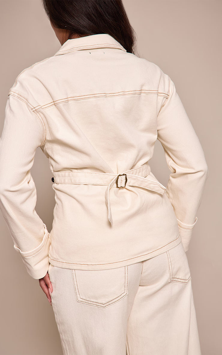 Update your denim essentials with the shape ecru stretch denim turn up sleeve adjustable back jacket. Made from premium stretch denim in a soft ecru tone, this jacket features adjustable back tabs and rolled sleeves for a flattering fit. Pair with matching jeans for a clean monochrome look.