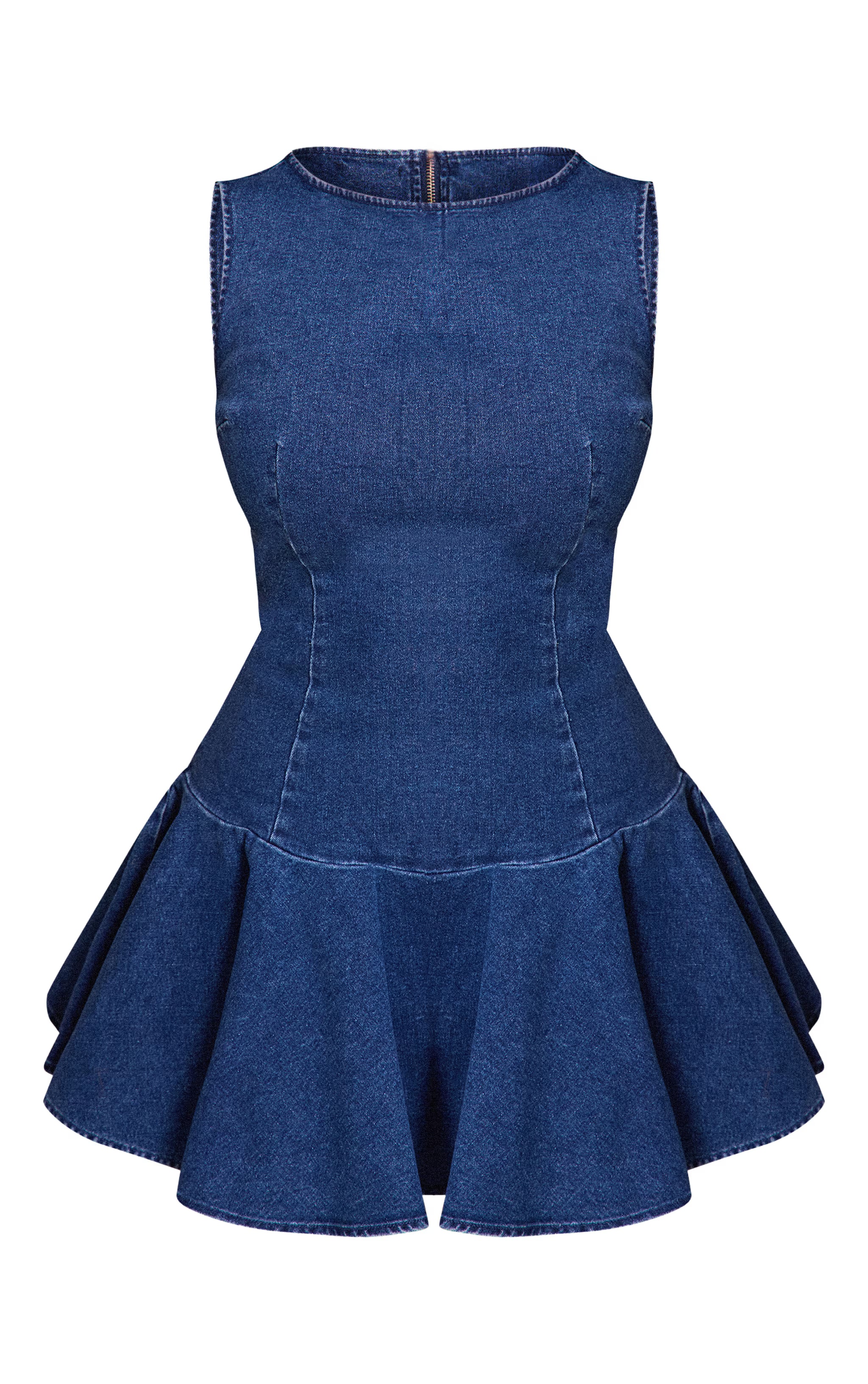 Make your evening entrance undeniably sleek. This indigo shape indigo stretch denim boat neck dropped hem mini dress reinvents night-out dressing with its bold color and artful cut. Featuring a sophisticated boat neckline and a fitted, sleeveless bodice that transitions seamlessly into a flared mini skirt at a contemporary dropped hem, it creates a confident outline. Elevate this piece for any special occasion by pairing it with statement gold heels and subtle gold stud earrings, ensuring a polished finish that speaks volumes.