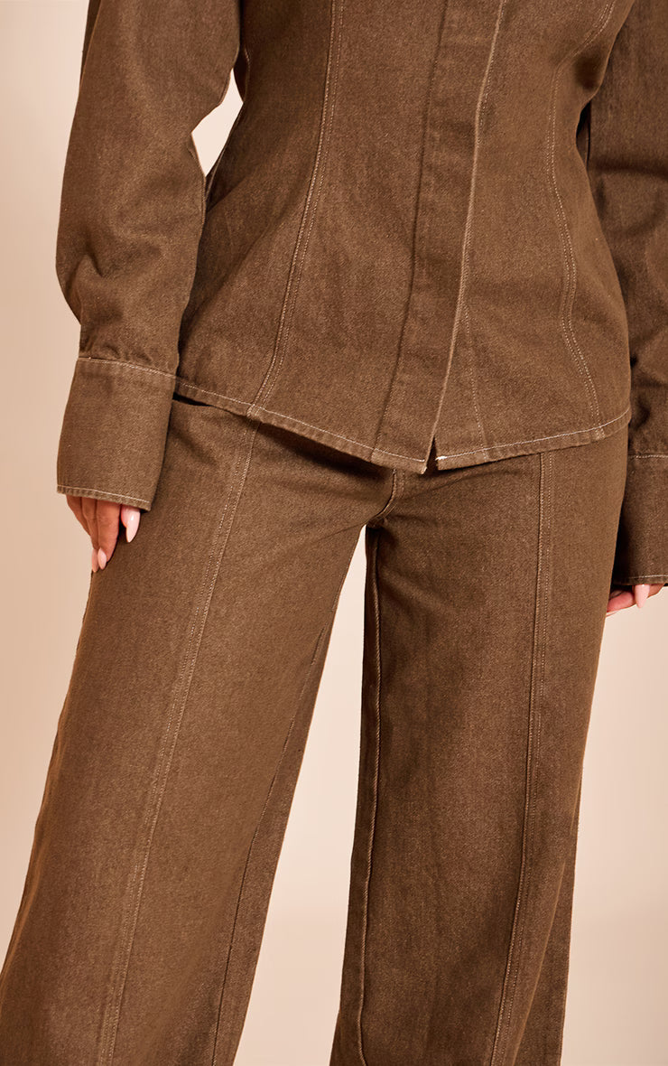 Elevate your everyday tailoring with the shape khaki seam front straight leg twill pant. Made from structured twill fabric in an earthy khaki shade, these pants feature front seam detailing and a flattering straight leg cut. Pair with a the matching shirt or a blazer for a polished smart-casual finish.