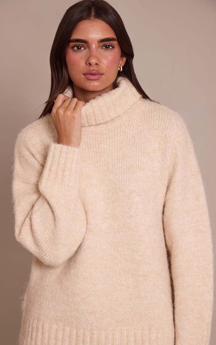 Stay chic in cooler months with the stone roll neck balloon sleeve oversized sweater. Made from soft stone-toned knit, this sweater offers a roll neck and statement balloon sleeves for a refined touch. Team with leather leggings and ankle boots for an elevated casual vibe.