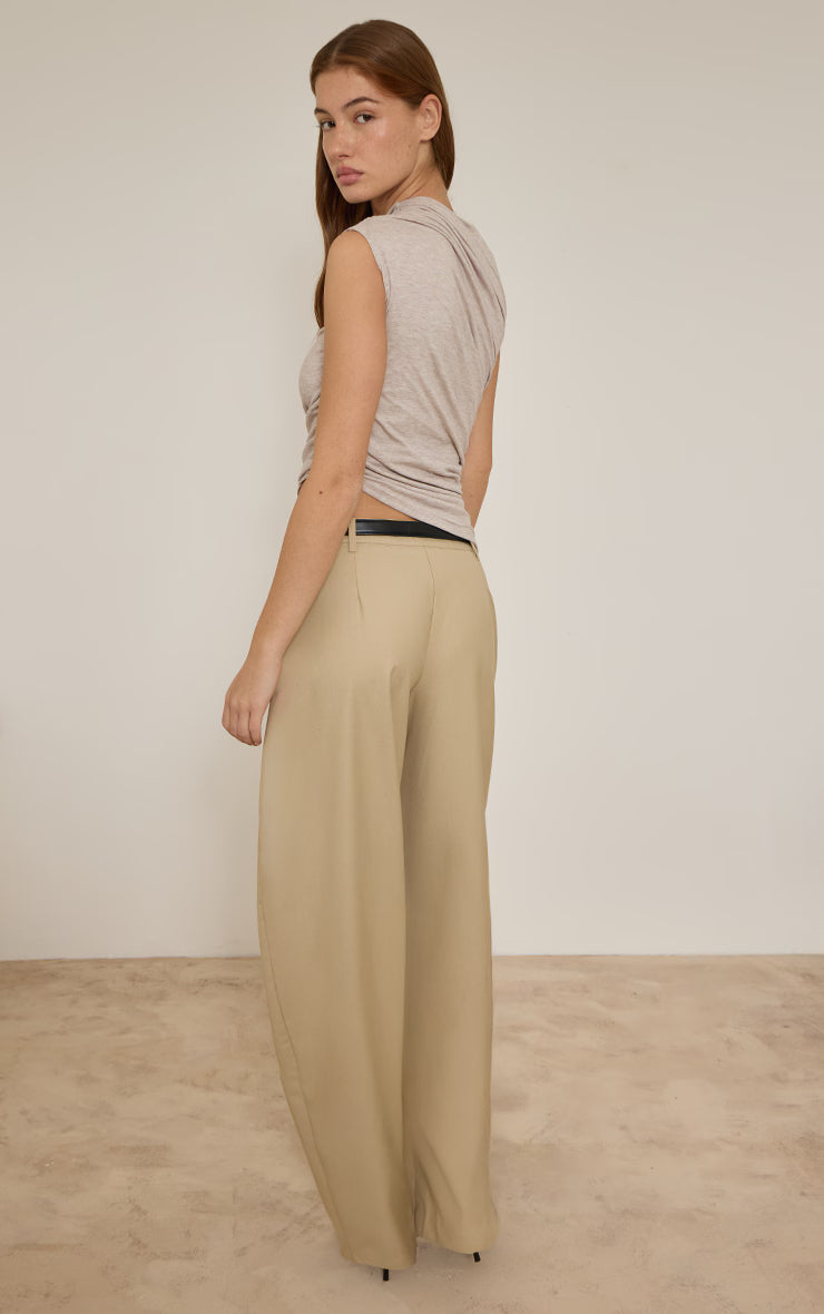 Feel confident with the tan belted wide leg pants. Made from tan material, these pants have a belted waist and a wide leg fit. Pair with a tucked-in blouse and ankle boots for chic daywear, or style with a cropped top and strappy sandals for evening vibes.