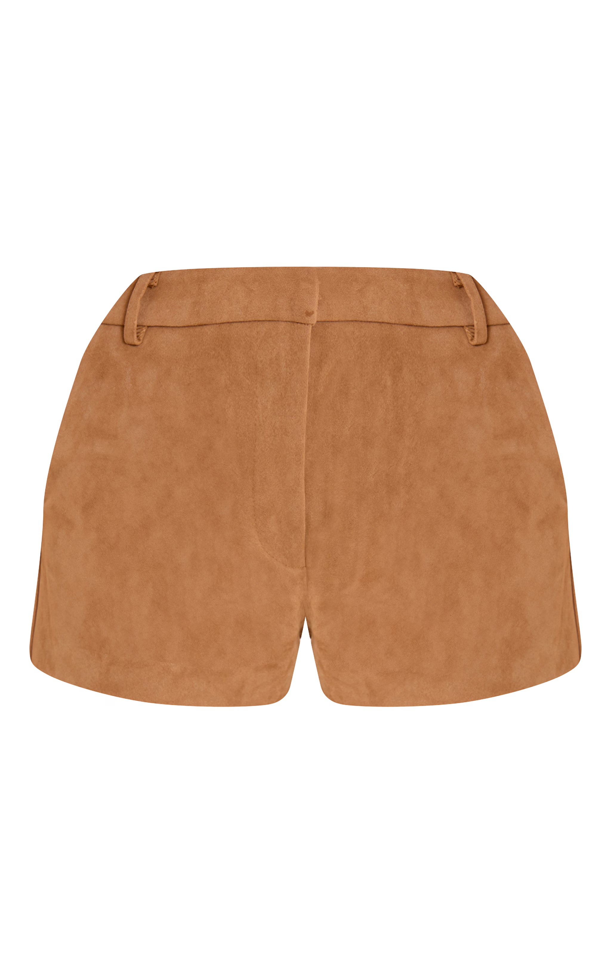 Refined yet relaxed, the tan structured faux suede tailored shorts are a new season essential. With clean lines and a flattering fit, they pair perfectly with a matching blazer for a polished two piece set set. Add a simple white tee and loafers for effortless everyday chic.