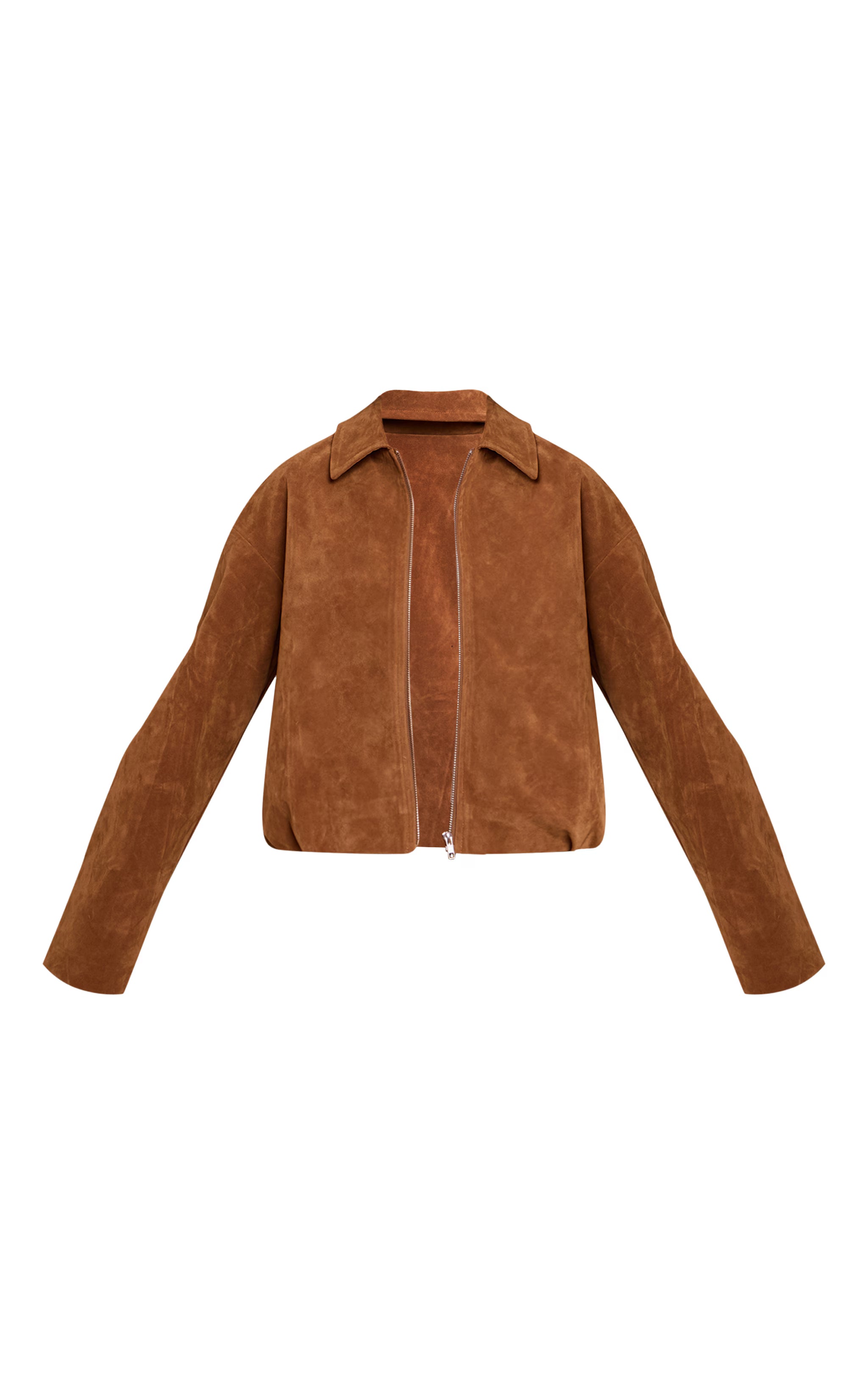 Strike the perfect balance between relaxed and refined with a piece that elevates any day ensemble. The tan suede zip up pleated cropped jacket defines this aesthetic, featuring a sharp collar and a polished central zip fastening that effortlessly cinches its contemporary cropped silhouette. Subtle pleating and clean lines ensure an assured profile for day. For a cohesive look, team it with the matching two piece set shorts or wide-leg pants, then ground the ensemble with a pair of sleek cowboy boots. Complete this confident edit with stacked gold bracelets to refine your aesthetic.
