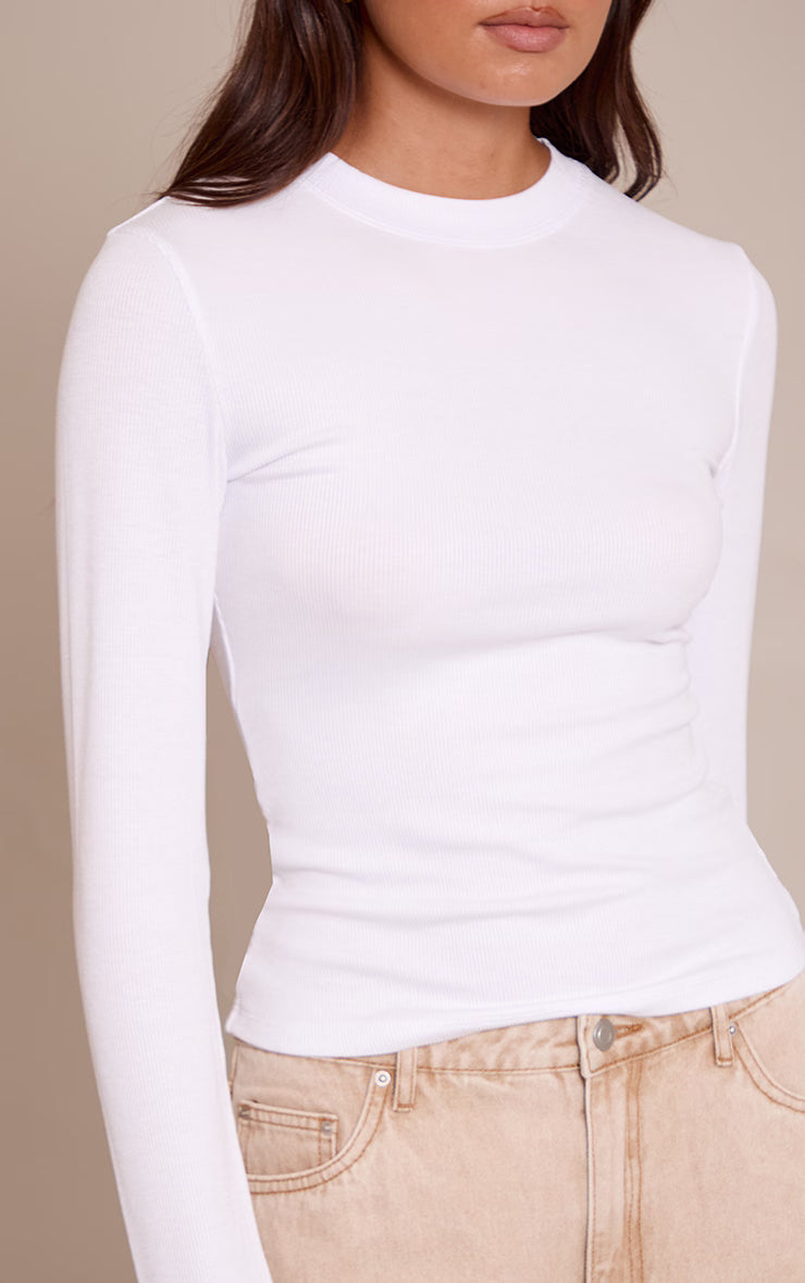 Feel cosy yet chic in this white soft rib crew neck long sleeve top. Made from white material, this top has a crew neckline, long sleeves and a ribbed finish. Wear it with your favorite neutral toned jeans and ballet flats or loafers for a polished look.