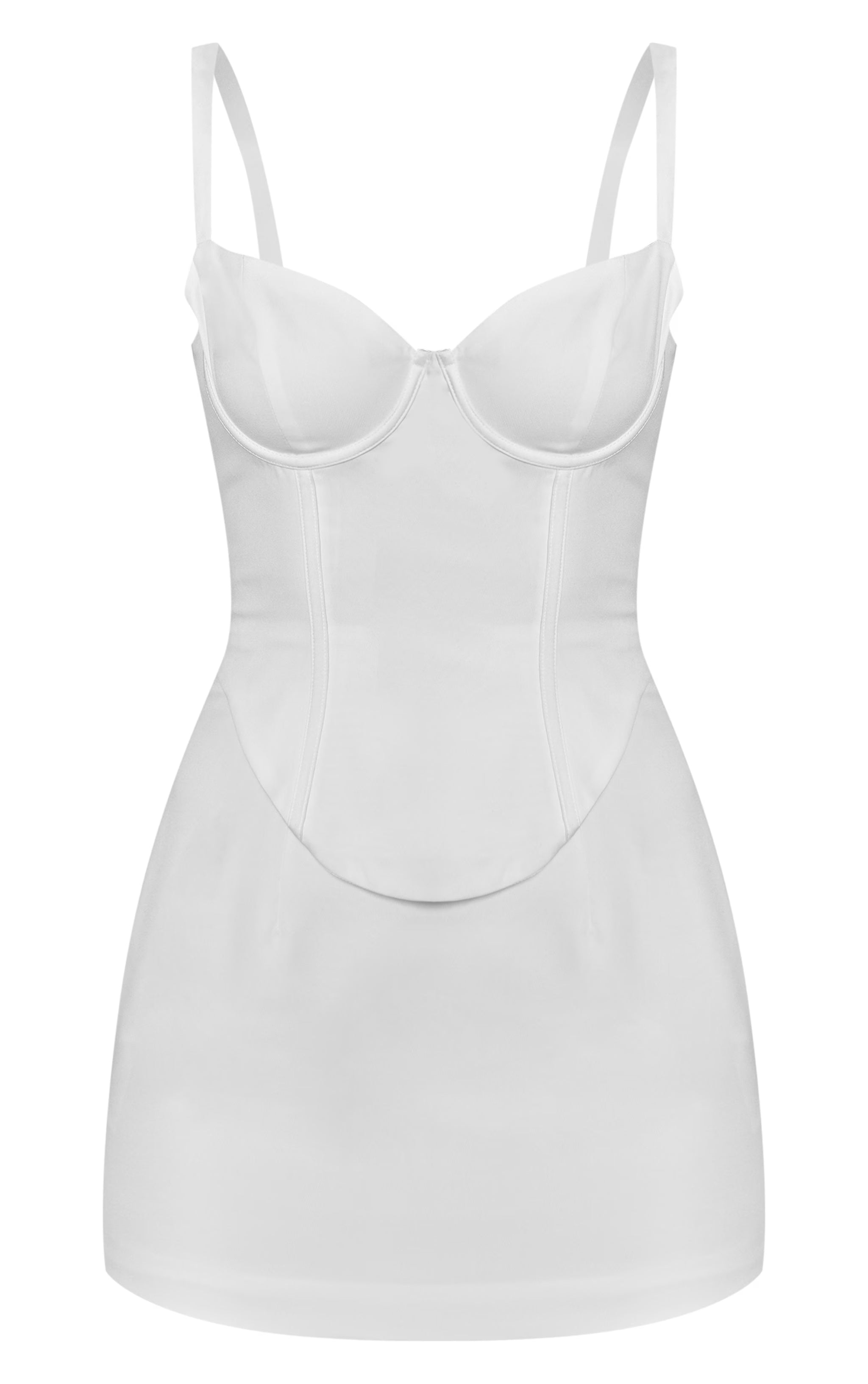 Embrace understated confidence for your next evening out. The white woven corset detail mini bodycon dress champions a sophisticated structure with its form-defining corset bodice, artful sweetheart neckline, and sleek mini length. Its clean white shade creates a striking silhouette, designed to make an impact. Pair this essential piece with some statement platform heels and delicate gold earrings for an evening aesthetic that speaks volumes.