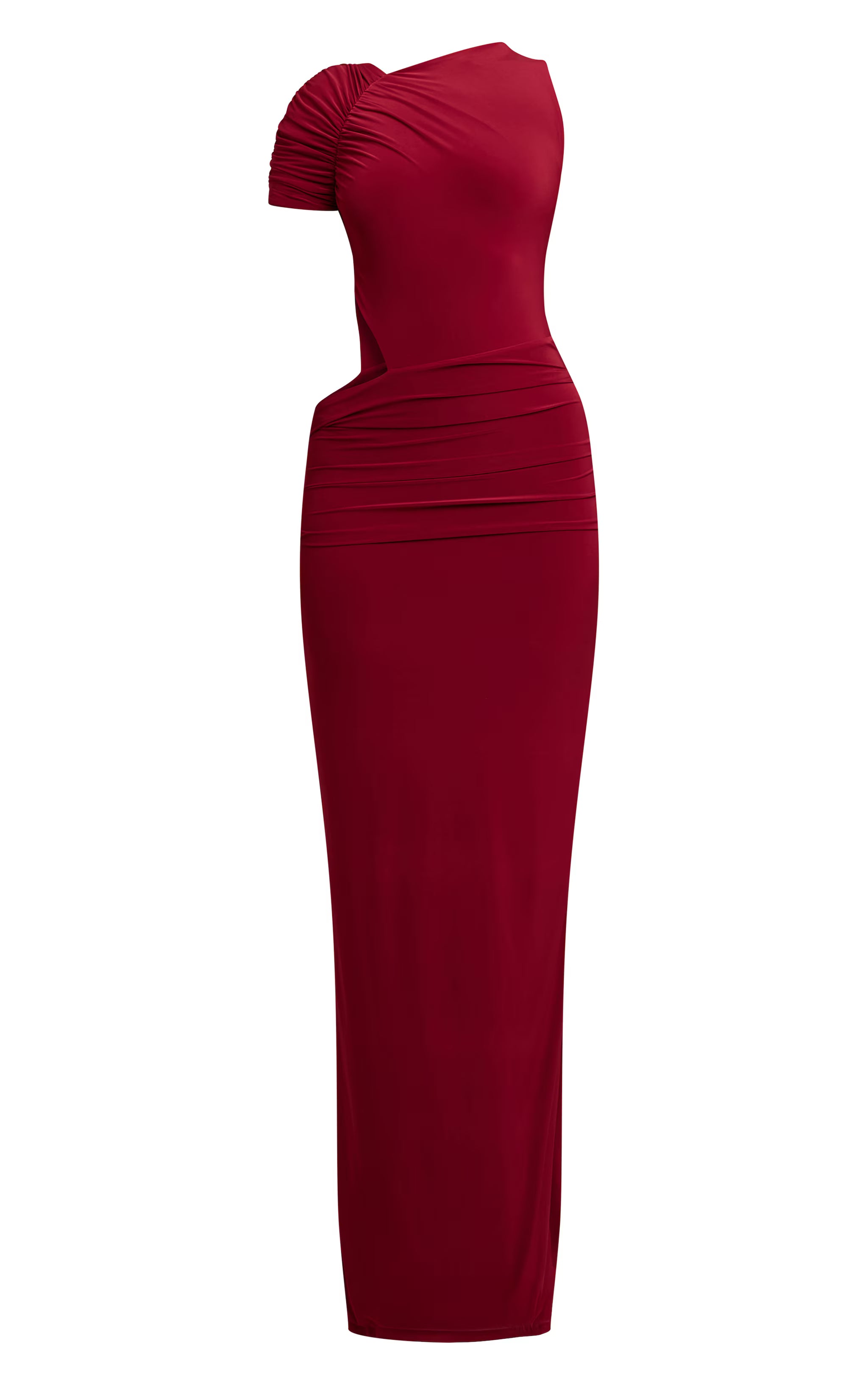 Make every entrance count; the wine slinky one sleeve ruched maxi dress is your undeniable statement for after-dark impact. This rich wine bodycon maxi style redefines presence with its striking asymmetric cut, featuring a singular artfully ruched sleeve that mirrors a clean sleeveless side. Strategic ruching through the bodice and hip sculpts a dynamic profile, complemented by an unexpected cut-out detail that defines the waist. To truly perfect the look, pair it with minimalist nude heels and delicate stud earrings, ensuring you capture the spotlight.