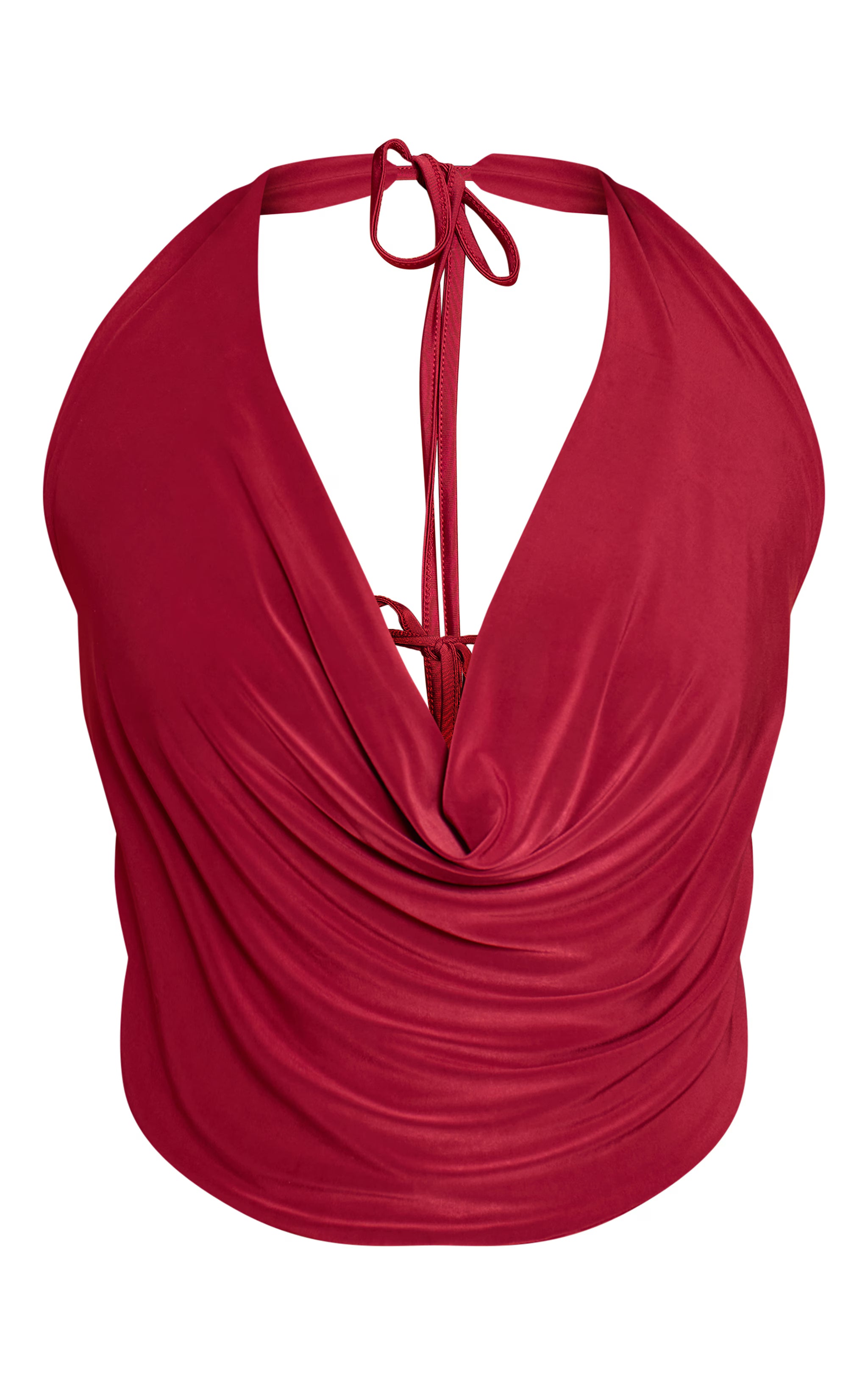 Own the after-dark agenda with a piece that balances drama and design. The wine slinky tie back cowl neck top features an elegant draped cowl neckline, framed by a halter-style cut that leaves the shoulders bare. Its artful tie-back fastening ensures a custom fit, creating a distinctive profile perfect for evening statements. Pair this confident design with sharply tailored wide-leg pants and ground the look with sleek mule heels, carrying a minimalist black bag for an aesthetic that's undeniably put-together.